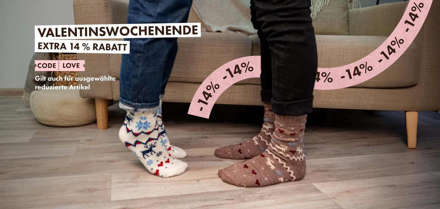 Nehmen Sie am Valentinsgewinnspiel teil und gewinnen Sie wärmende Wollsocken von Woolville. Folgen Sie einfach unserem Instagram oder Facebook und markieren Sie Ihren Valentin in den Kommentaren.